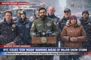 New York City officials are urging residents to limit travel and remain indoors as a powerful winter storm is expected…