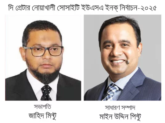 The leadership of the Greater Noakhali Society USA Inc., one of the largest social organizations for Bangladeshi expatriates in the United States, has been officially confirmed following an uncontested election. The full panel led by Zahid Mintoo and ASM Mainuddin Pintoo was declared elected without opposition.