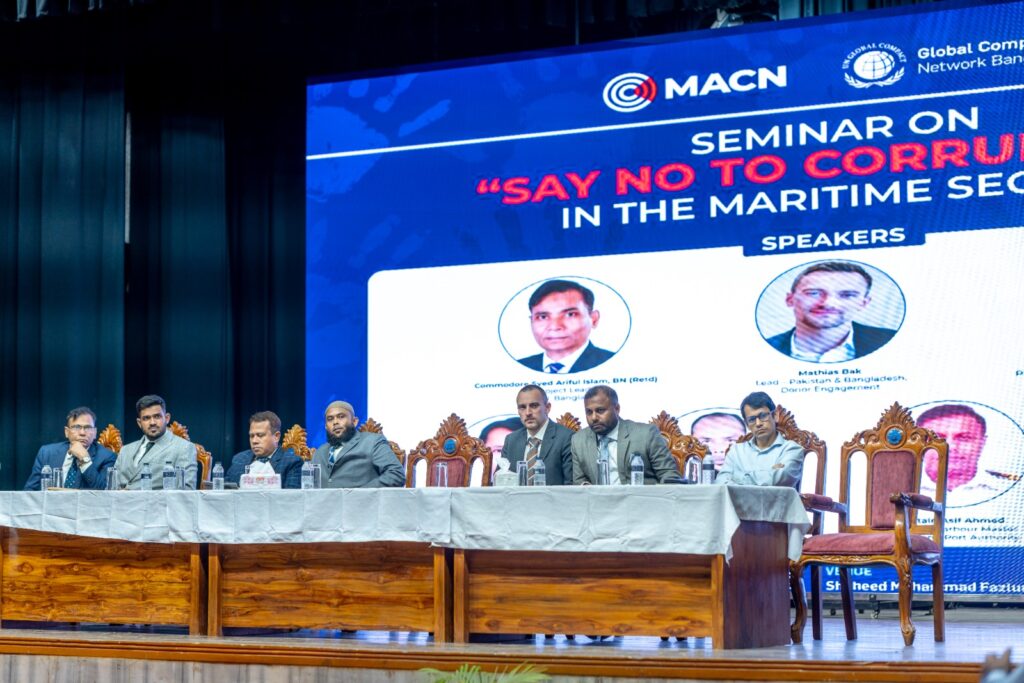 Key industry and government figures attending the seminar included: Commodore Mahmudul Malek, Managing Director, Bangladesh Shipping Corporation, Mohammad Shafi Uddin, Commissioner, Chattogram Custom House, Senior delegates from CPA, Mercantile Marine Office, Bangladesh Shipping Agents Association (BSAA), and other inter-agency coordination bodies Project Lead of the Maritime Anti-Corruption Network (MACN) Bangladesh, Commodore Syed Ariful Islam, BN (Retd.), delivered the welcome remarks at the event.