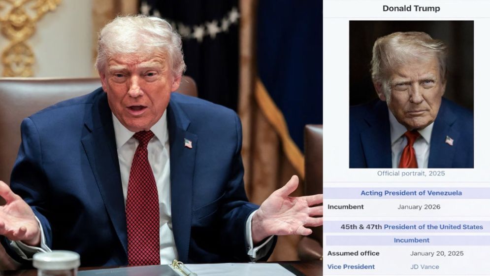 US President Donald Trump on Sunday shared an image of his Wikipedia page that described him as the “Acting President of Venezuela”.